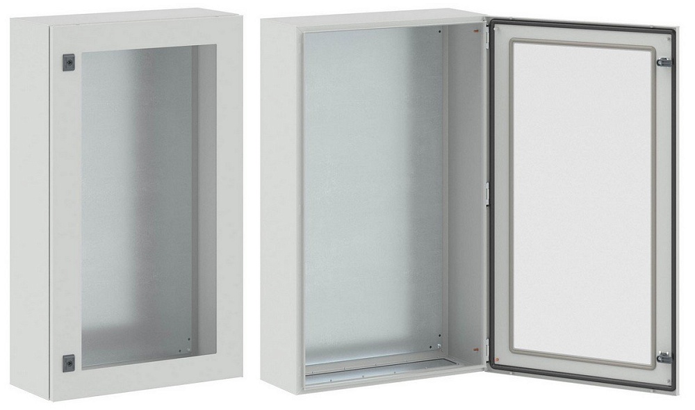 Навесной шкаф с прозрачной дверью серии CE, IP65, 1000х600х250 мм (ВхШхГ). В комплекте с монтажной платой, дверью, замком без ручки - 2 шт, фланцем для ввода кабеля, монтажными аксессуарами