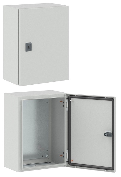Навесной шкаф высота 400мм, ширина 300мм, глубина 200мм, степень защиты IP66, в комплекте с монтажной платой, дверью, замком, фланцем для ввода кабеля, монтажными аксессуарами