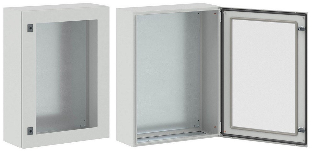 Навесной шкаф с прозрачной дверью серии CE, IP65, 800х600х250 мм (ВхШхГ). В комплекте с монтажной платой, дверью, замком без ручки - 2 шт, фланцем для ввода кабеля, монтажными аксессуарами