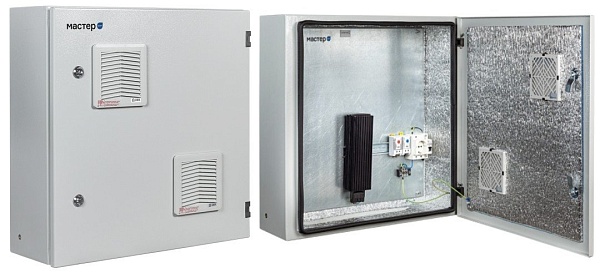 Шкаф климатической защиты с вентиляторными решетками (пассивная вентиляция) и защитным реле от "холодного пуска"; IP54, t-раб.-55...+50°С, габариты (внешние): 600х600х250мм(ШхВхГ), габариты (внутренние): 570х570х190мм(ШхВхГ). Цвет серый (RAL7035). Комплектация: утеплитель из порилекса НПЭ, замок 2 шт, ключ 1 шт, монтажная плата 1шт, люк под гермовводы 1 шт, гермовводы 2шт, розетка 1 шт, автоматический выключатель 1шт, термореле 1 шт, реле предстарта 1 шт, нагреватель мощностью в 150 Вт 1шт, вентиляционные панели 2шт.