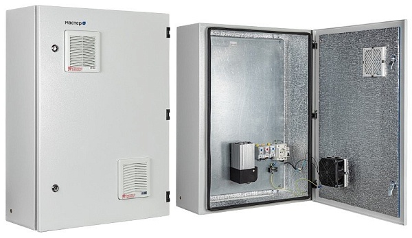 Шкаф климатической защиты с вентиляторными решетками, вентилятором (активная вентиляция) и защитным реле от "холодного пуска"; IP54, t-раб.-55...+50°С, габариты (внешние): 600х800х300мм(ШхВхГ), габариты (внутренние): 570х770х205мм(ШхВхГ). Цвет серый (RAL7035). Комплектация: утеплитель из перилекса НПЭ, замок 2 шт, ключ 1 шт, монтажная плата 1шт, гермовводы 2шт, розетка 1 шт, автоматический выключатель 1шт, термореле 1 шт, реле предстарта 1 шт, нагреватель мощностью в 250 Вт 1шт, вентилятор NTL FF 152 1шт, вентиляционные панели 2шт.