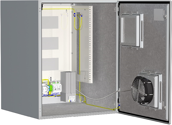 Шкаф монтажный с обогревом и вентиляцией для установки в нём телевизионного либо другого электронного оборудования, устанавливаемого в 19-дюймовую стойку (12 юнитов) ; AC220В ± 15% /2A; IP55; -60° ... +50°С; 600х760х600 мм; ( Максимальная мощность тепловых потерь устанавливаемой в шкаф аппаратуры 390 Вт)