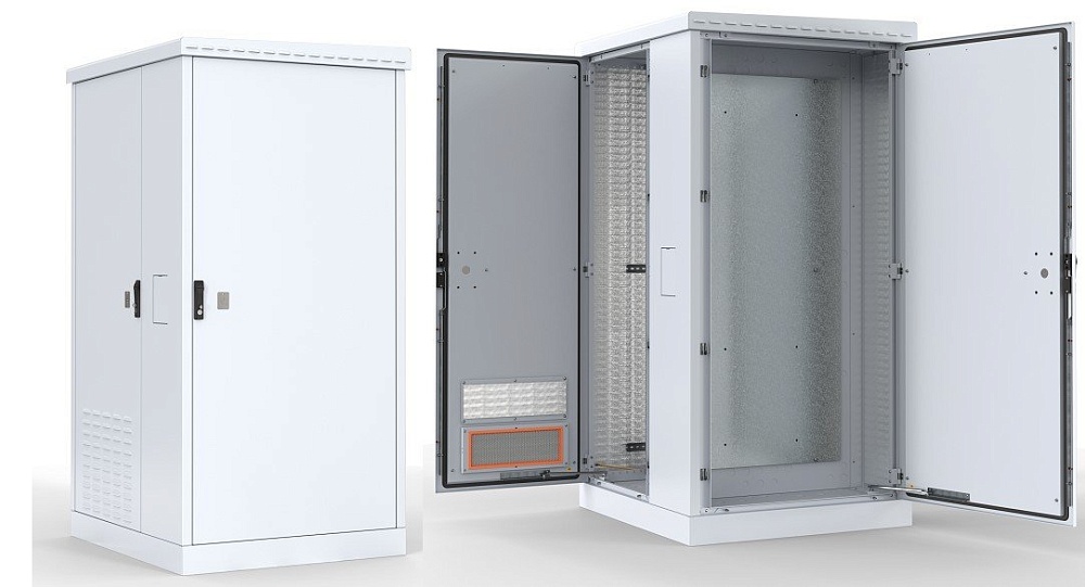 Всепогодный шкаф 19" напольный с 2-мя изолированными отсеками, 24U, 1310x1045x630мм; полезная глубина 520мм, материал сталь 2мм, 3 двери, цвет серый, неразборный, допустимая нагрузка до 800 кг, вес 162 кг, IP65, -50…+45°C.