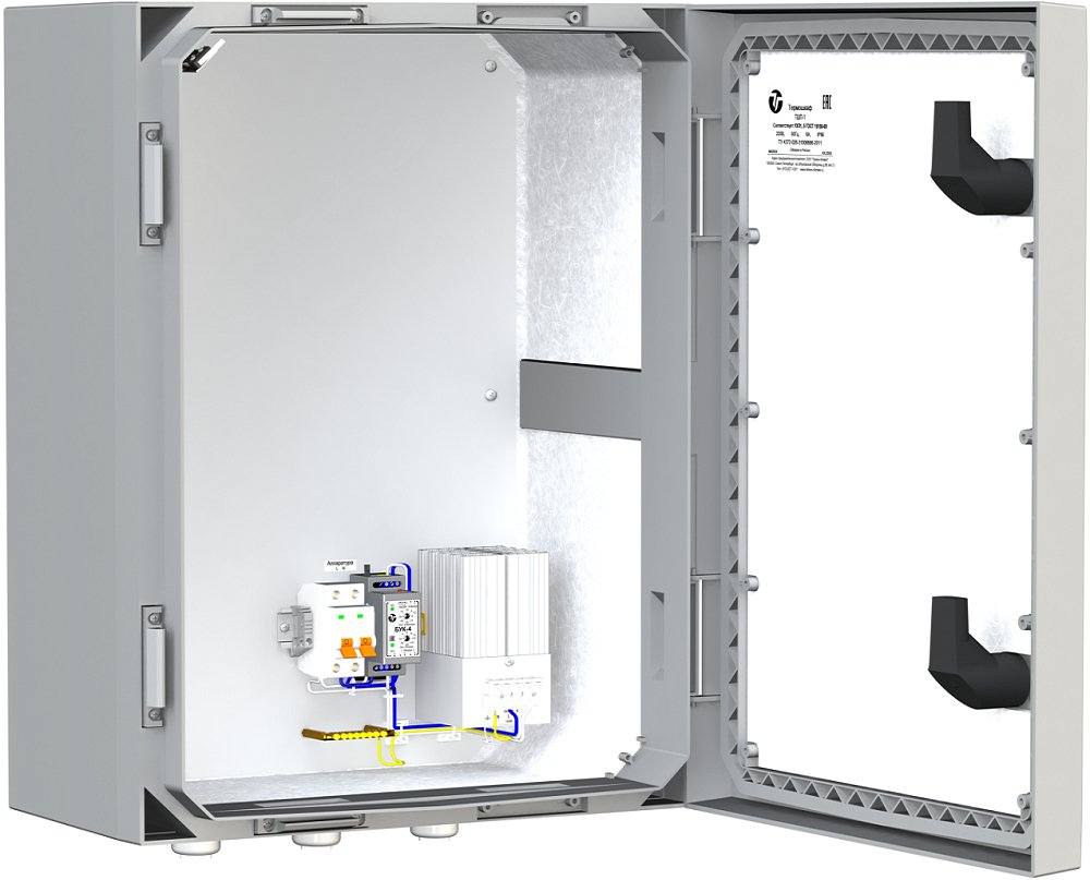 Термошкаф; AC 220 В; I-нагр.6 А(max); P-потр.178 Вт; IP66; -40...+80°С; 500х600х230 мм. В комплекте: блок управления климатом (БУК-4), обогреватель шкафов ОТШ-160, тампер. Материал - пластик.