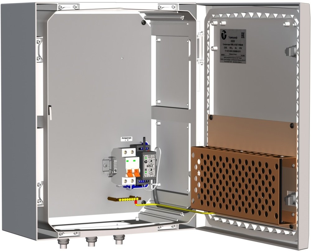 Термошкаф; AC 220 В; I-нагр.6 А(max); P-потр.178 Вт; IP66; -40...+80°С; 500х400х210 мм. В комплекте: блок управления климатом (БУК-4), тампер. Материал - пластик.