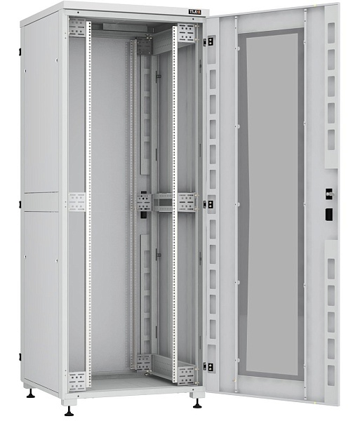 Напольный шкаф 19", 42U, перфорированные передняя и задняя двери с ручкой и замком, боковые двухуровневые цельнометаллические панели, оснащены замками, 2042х800х800мм, полезная глубина 750мм, в разобранном виде, серый. RAL7035