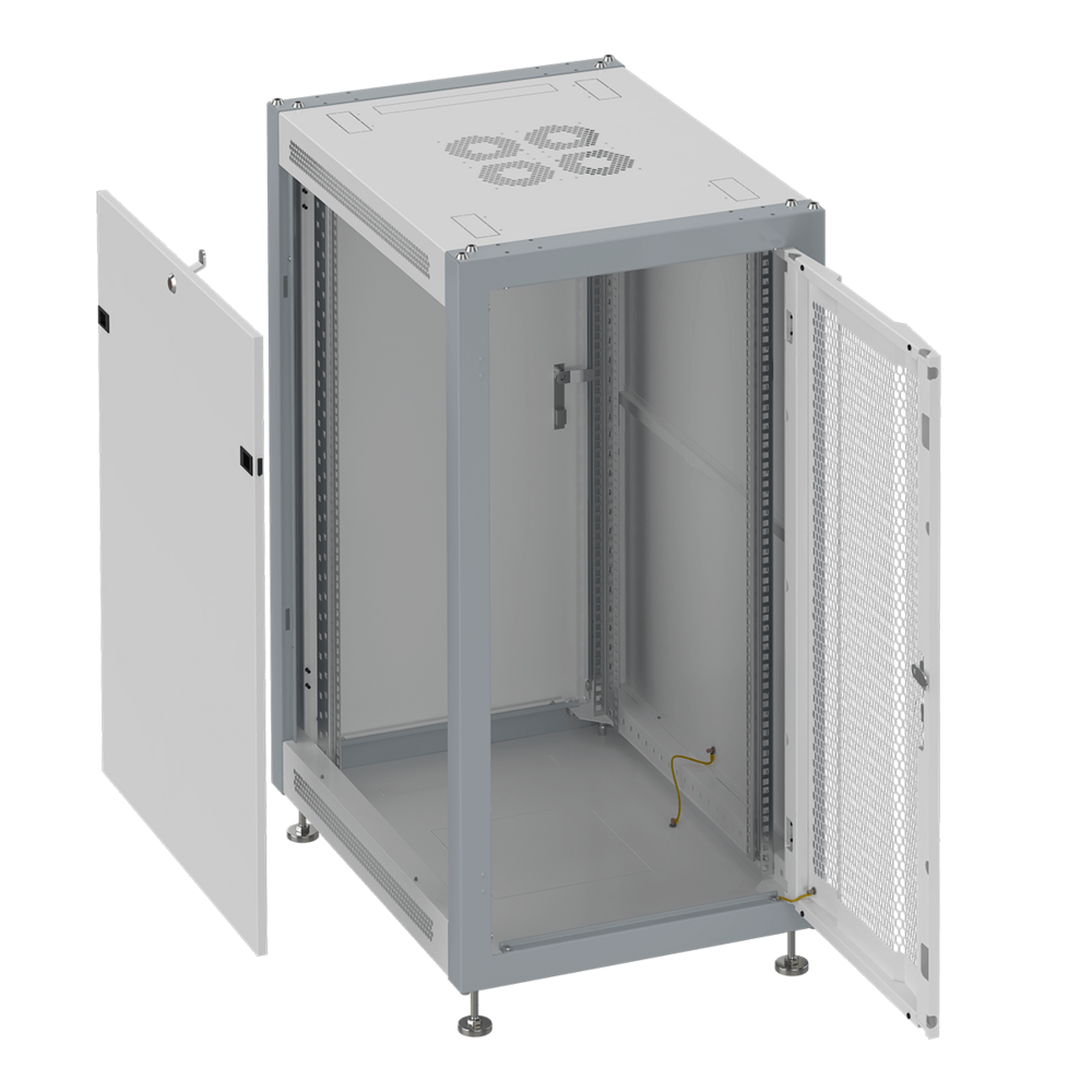 Шкаф монтажный телекоммуникационный 19" напольный 27U 600x600x1330mm (ШхГхВ), передняя дверь перфорированная, задняя дверь сплошная металлическая, поворотная ручка с замком, цвет серый RAL 7035. Разобранный.