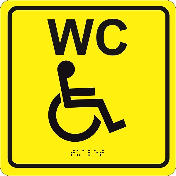 Табличка тактильная с пиктограммой "Туалет для инвалидов" (200x200мм) желтый фон