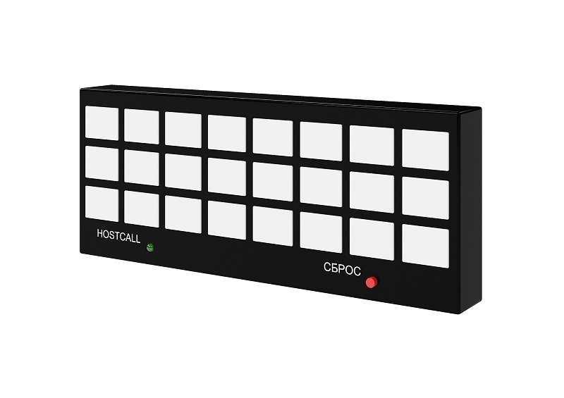 Табло отображения палаты для дублирования вызовов, поступивших на пульт дежурного персонала. Для работы в составе комплекта оборудования "HostCall-CMP". Световая и звуковая индикация. 265х100х30 мм