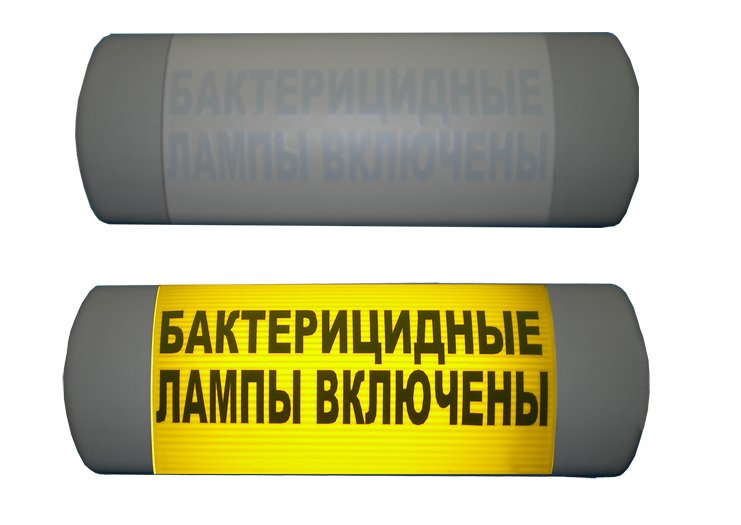 Световое табло «Бактерицидные лампы включены», напряжение питания 220 В, количество и мощность ламп OSRAM -Dulux 1х11, габаритные размеры 310x130x60 мм