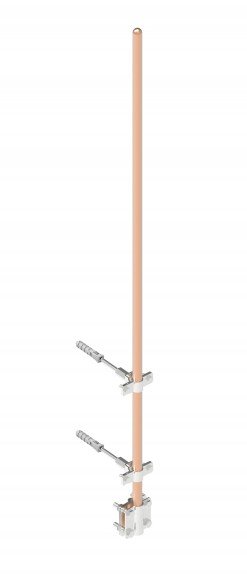 Молниеприемник с держателями, L=2000 мм, диаметр: 16 мм, подключение: провод круглого сечения, материал: медь, цвет: красный, комплект: два держателя с дюбелями и установочный соединитель для подключения токоотвода, возможно подключения прутка Ø 8 или 10 мм или полосы 25х4 мм.