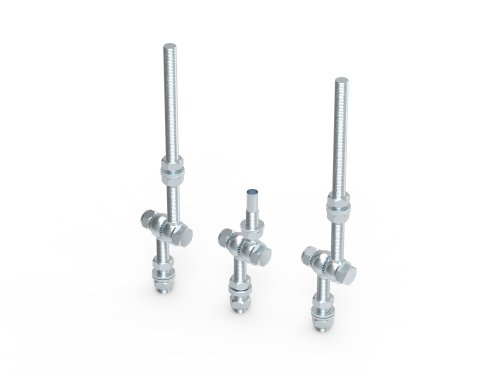 Регулировочный комплект для молниеприемной мачты 5-7 м, размер резьбы: М16, монтажный тип держателя: просверленное отверстие с метрической резьбой, материал крепления: термогальванизированная сталь, материал основания: термогальванизированная сталь, цвет: серый