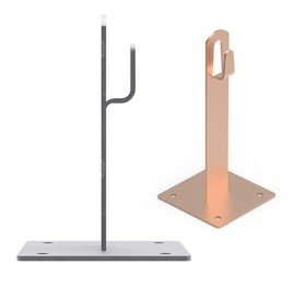 Металлический держатель винтовой с зажимной скобой/хомутом, для установки на поверхность крыши, материал крепления: медь, материал каркаса: медь, L=150 мм, цвет светло-серый