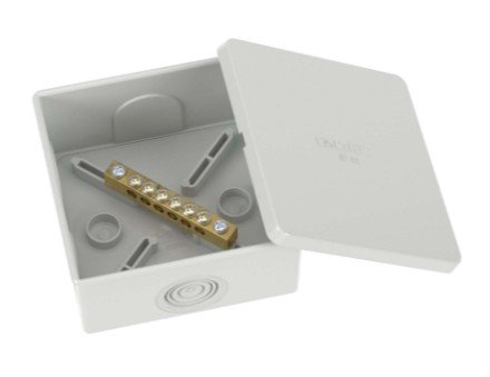 Коробка уравнивания потенциалов, кол-во вводов: 6 шт Ø 20 мм, кол-во зажимов: 6 шт, не содержит галогенов, тип ввода в корпус: уплотнительная мембрана, IP44, t-раб.: -25...60 °C, размер: 80х80х40 мм, пластик, цвет серый