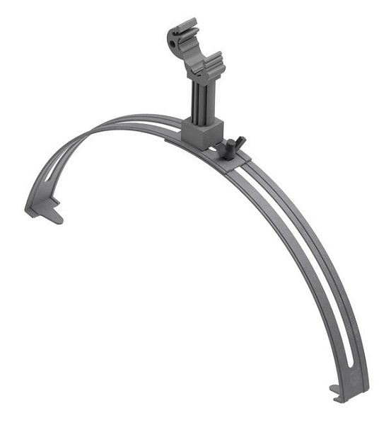 Коньковый регулируемый зажим с пластиковым держателем, тип проводника: пруток Ø 8-10 мм, диапазон зажима 125…205 мм, L каркаса 68 мм, материал крепления: пластик, материал каркаса: горячеоцинкованная сталь, цвет светло-серый