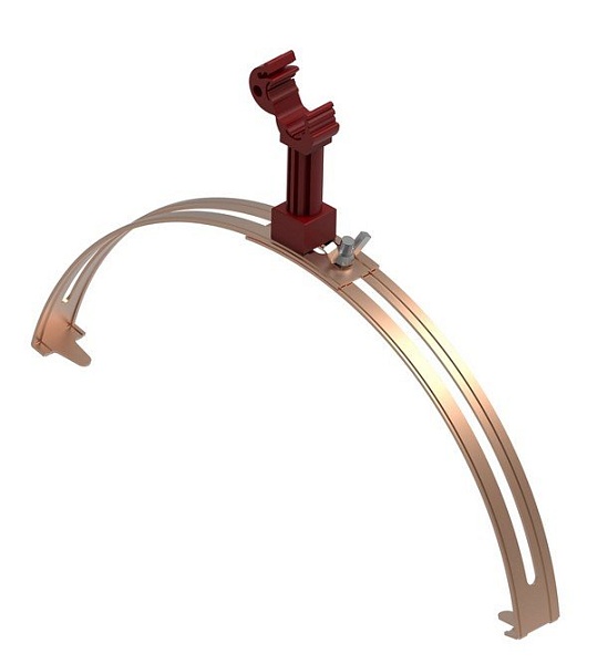 Коньковый регулируемый зажим с пластиковым держателем, тип проводника: пруток Ø 8-10 мм, диапазон зажима 125…205 мм, L каркаса 68 мм, материал крепления: пластик, материал каркаса: медь, цвет красный