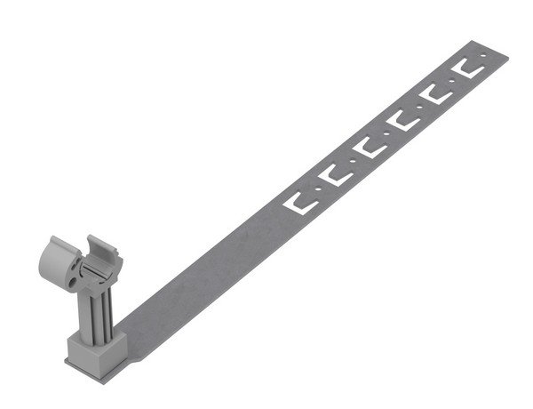Пластиковый держатель под черепицу зажимом с защелкой, для установки на поверхность крыши, Ø проводника 8 мм, L каркаса 330 мм, материал крепления: пластик, материал каркаса: горячеоцинкованная сталь, цвет светло-серый