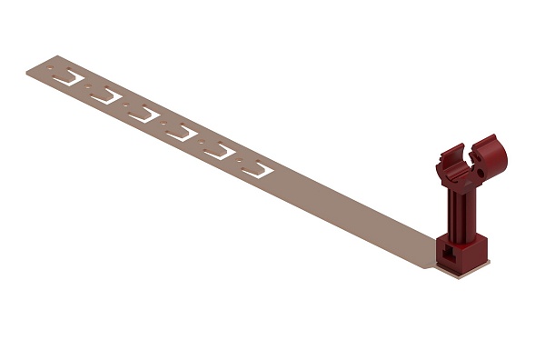 Пластиковый держатель под черепицу зажимом с защелкой, для установки на поверхность крыши, Ø проводника 8 мм, L каркаса 415 мм, материал крепления: пластик, материал каркаса: медь, цвет красный