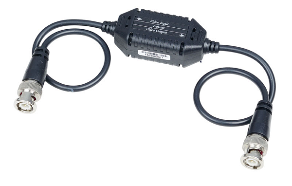 Изолятор коаксиального кабеля TVI, CVI, AHD для защиты от искажений по земле; Встроенная защита от скачков напряжения в цепи передачи видеосигнала (TVS); Вх. - BNC. Вых. - BNC; 84x28x21мм (BNC разъёмы на кабеле 150мм); -40...+55°C.
