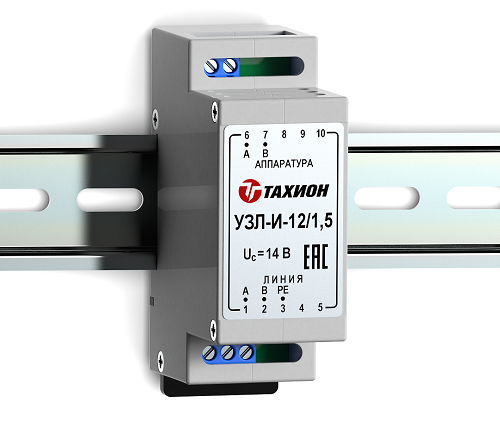 Устройство защиты интерфейсов с подачей питания; U-раб.12 В, I-ном.1.5 А; 89х58х35мм, t-раб.-55…+85°С. Крепление на DIN-рейку.