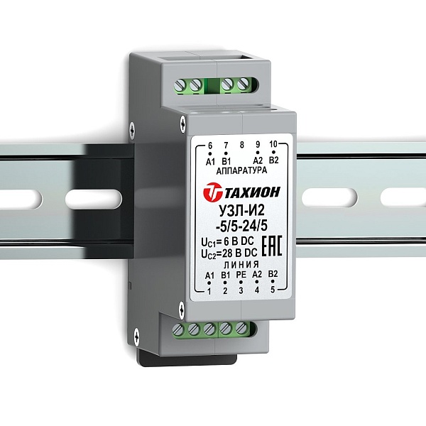 Двухканальное устройство защиты оборудования, использующего 2х проводные линии интерфейса с подачей питания. Обеспечивает защиту интерфейса и передачу питания 5 В DC по первому каналу и 24 В DC по каналу второму каналу по сигнальным парам с величиной тока до 5 А. - 55°С - +85°С, 89х58х35 мм.