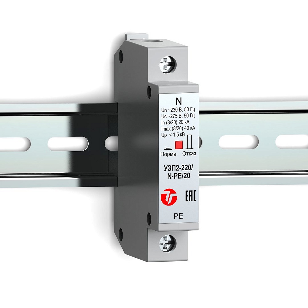 Однополюсное устройство защиты ограничительного типа класса испытаний II. Для защиты электрооборудования распределительных сетей 220 (230) В AC от импульсных перенапряжений. Применяется в сетях с системой заземления TN-S (TN-C-S), TT в линии нейтрали- N. Визуальный индикатор состояния аварийного отключения. Крепление на DIN-рейку. - 55°С... +85°С, 92х63х17.8 мм.