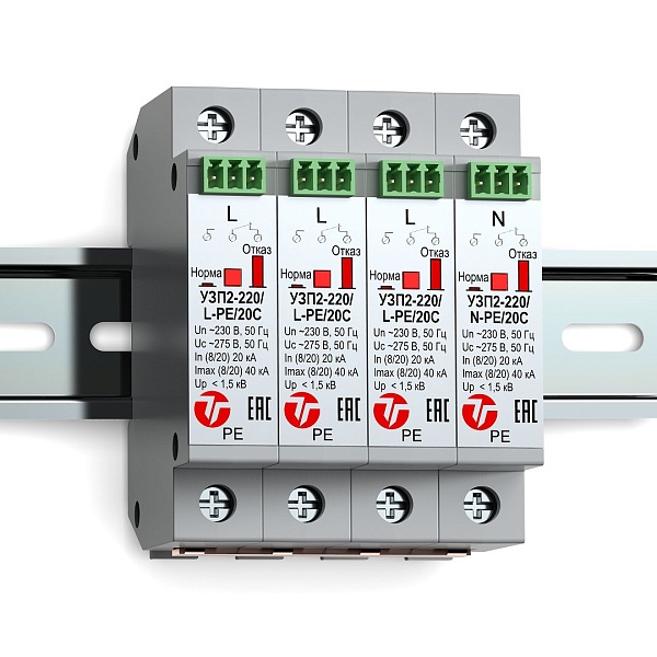 Четырехполюсное устройство защиты ограничительного типа класса испытаний II. Для защиты электрооборудования распределительных сетей 220 (230) В AC от импульсных перенапряжений. Применяется в трехфазных сетях с системой заземления TN-S (TN-C-S), ТТ. Визуальный индикатор состояния и дистанционная сигнализация состояния аварийного отключения. Крепление на DIN-рейку. - 55°С - +80°С, 92х74.5х72 мм.