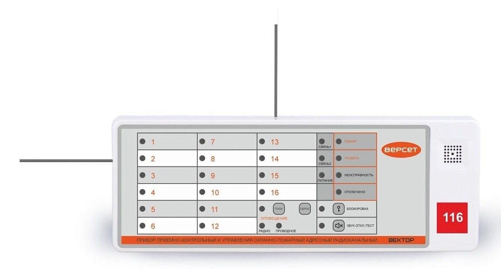 Прибор приемно-контрольный охранно-пожарный радиоканальный, 16 адресных зон, до 64 радиоканальных устройств (в том числе до 24 радиоканальных оповещателей), память 1024 события, до 80 идентификаторов (радиобрелков, ключей ТМ, кодов пользователей), работа в автономном режиме и в составе системы ВЕТТА-2020, RS-485, ТМ, два выхода "ОК" для СО и ЗО, 4 реле, 2 входа питания, U-пит.12 В, I-потр.100 мА; IP40, t-раб.-30...+55°С, 280х103х35 мм