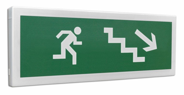 Оповещатель световой радиоканальный "Человек вправо вниз", f-раб.868...869 МГц, 10 частотных каналов, дальность связи до 300 м, t-свечения до 60 час, U-пит.3.6В (ER14505M), IP41, t-раб.-30...+55°С, 303х112х33 мм