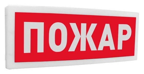 Оповещатель световой табличный адресный для работы под управлением С2000-КДЛ; гальваническая развязка ДПЛС; U-пит.12...24 В; I-потр.25 мА(max); IP41; t-раб.-30...+55°С; 233х112х33 мм. Вариант надписи: исп.00 - "ПОЖАР"