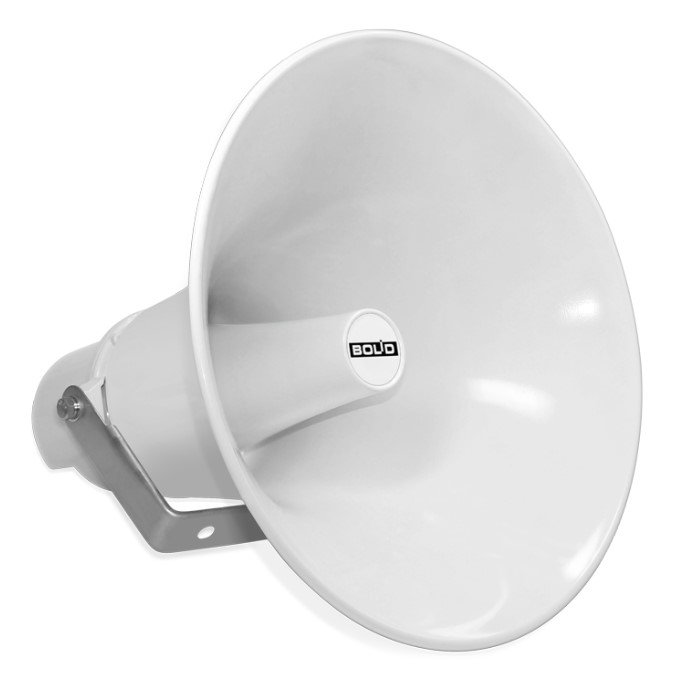 Оповещатель пожарный речевой всепогодный рупорный; U-вх.100 В, P-ном.50/25 Вт, SPL 104 дБ, f-раб.300…14000Гц; IP56, t-раб.-55…+55°С, 325х325х355 мм. Материал корпуса - алюминий.