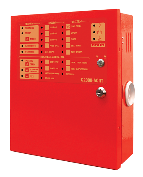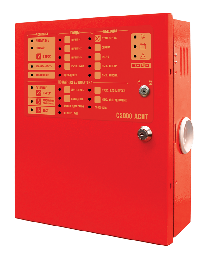 Прибор управления порошковым, аэрозольным или газовым пожаротушением на одно направление (24В/1А, до 2А в течение 2 сек.), совместно с С2000-КПБ - до 97 пусковых цепей. Работа под управлением С2000-М или в составе ИСО "Орион". Выходы на оповещатели: СО1 "Уходи", СО2 "Не входить", СО3 "Авт.отключена", ЗО "Сирена" - 24В/1А. Выход NO-C-NO =28В/2А (~128В/0,5А). Выходы "Пожар", "Неисправность": =100В/0,1А (НР), Выход пит. 24В/0,2А. U-пит. ̴220В/50 Гц; корпус под два АКБ 12 В/4,5 Ач; Р-потр. 30ВА; IP30; t-раб.0…+50°C; 305х255х95 мм; масса 6,0 кг