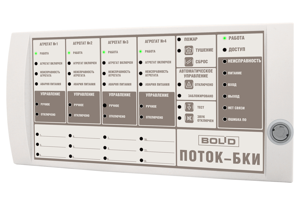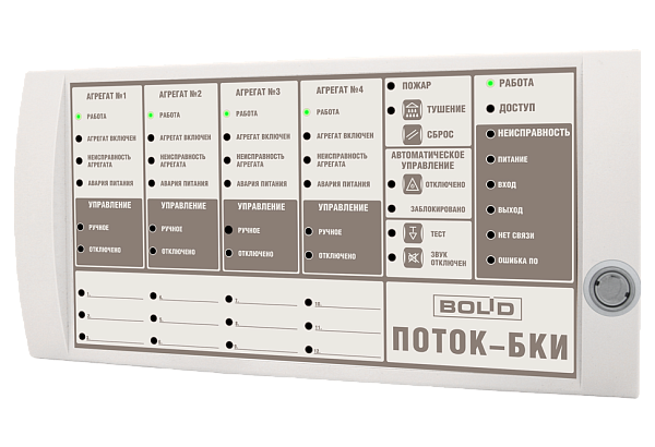 Блок управления и индикации состояния прибора Поток-3Н, 17 разделов, 50 индикаторов, RS-485, Uпит.10,2...28,4В, Iпотр.200мА, 170х340х25,5мм