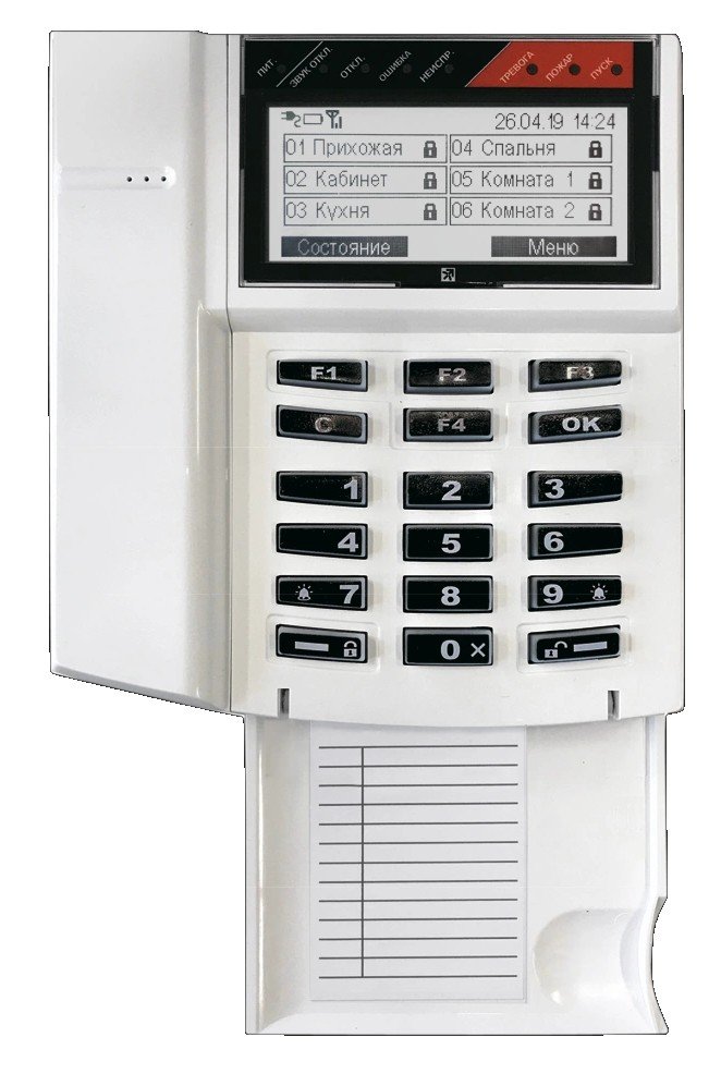 Радиоканальный пульт управления, индикации и контроля сегментом для работы в системе "СТРЕЛЕЦ-ПРО", ретрансляция событий от дочерних устройств; ЖК-дисплей с трехцветной подсветкой на выбор (белый, зеленый, синий); встроенный звук. сигнализатор; дальность радиоканала до 1200 м, f-раб. 868 МГц, U-пит. внешнее 9...28 В, I-потр. 130 мА, t-раб. -20...+55 °С, IP41, габ.размеры 131x145x30 мм