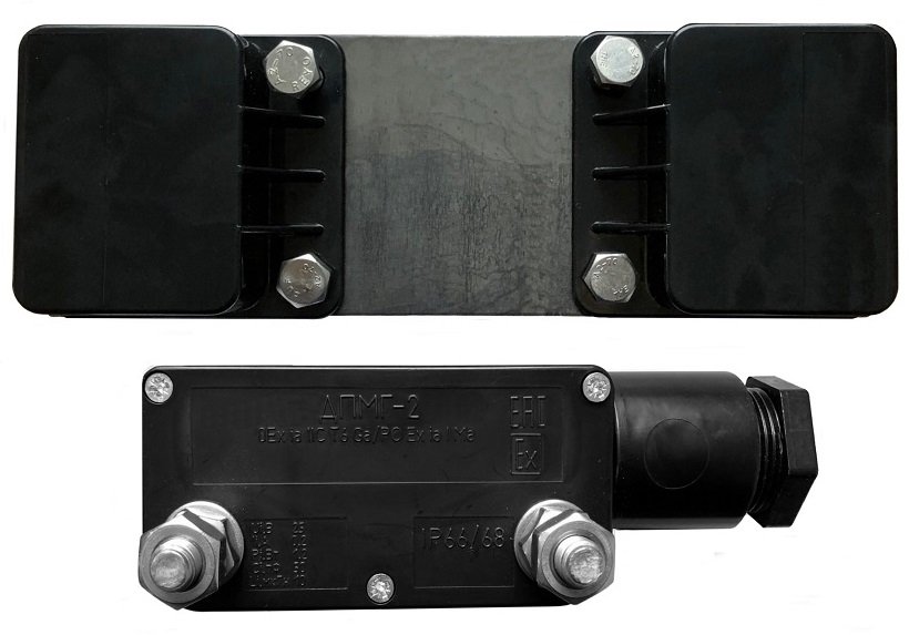 Датчик положения магнитогерконовый для металлических поверхностей; контакты размыкаются при удалении блоков друг от друга; расстояние между блоками: 200 мм (контакты замкнуты), 260 мм (контакты разомкнуты); U-коммут. ≤ 250 В, I-коммут. ≤ 2 А; тампер, IP66/IP68, t-раб.-65...+60°C, габ.размеры блока геркона 160х55х52 мм, блока магнитов 150х70х38 мм. Геркон изготавливается со встроенными резисторами R1 = 1 кОм (вкл. последовательно), R2 = 10 кОм (вкл. параллельно).