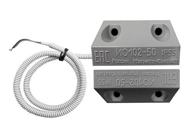 Магнитоконтактный для металлических поверхностей; контакты размыкаются при тревоге, 30 мм (контакты замкнуты), 65 мм (контакты разомкнуты); U-коммут.30 В, I-коммут.50 мА, P-коммут.10 Вт; IP55, t-раб.-50…+50°С, 50х29х30 мм (геркон) 50х29х30 мм (магнит). Кабель в пластиковом гофрорукаве 600 мм. Пластиковый корпус. 0.155 кг.