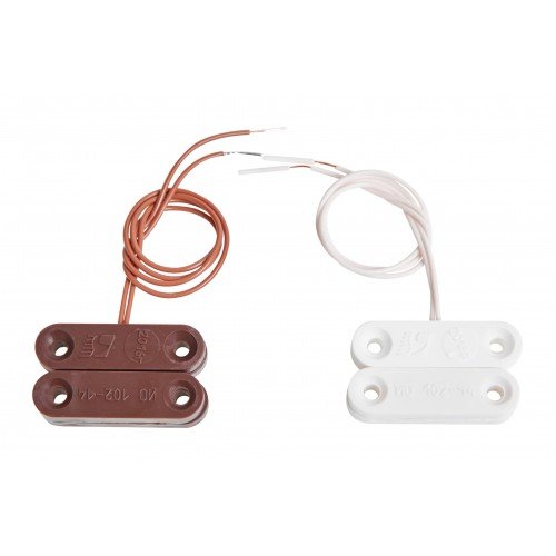 Магнитоконтактный; контакты размыкаются при тревоге; 12 мм (контакты замкнуты), 45 мм (контакты разомкнуты); U-коммут.72 В, I-коммут.500 мА, P-коммут.10 Вт; t-раб.-50…+50°С; 35х10х10.5 мм (геркон и магнит). Кабельный отвод. Коричневый пластиковый корпус. 0.01 кг