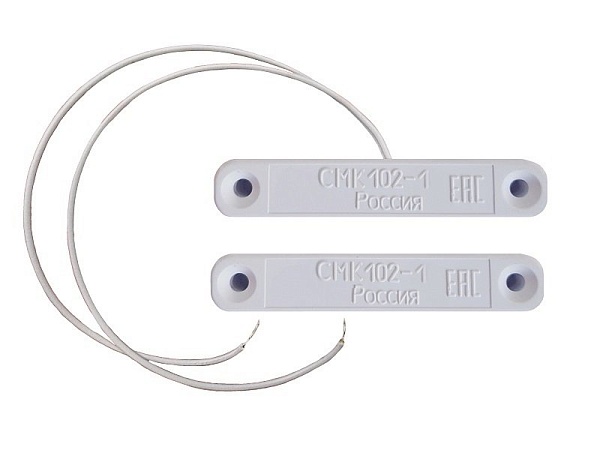 Магнитоконтактный; контакты размыкаются при тревоге, 20 мм (контакты замкнуты), 45 мм (контакты разомкнуты); U-коммут.50 В, I-коммут.50 мА, P-коммут.10 Вт; IP44, t-раб.-50…+50°С, 57х11х11 мм (геркон и магнит). Два провода по 170 мм. Пластиковый корпус. 0.019 кг.