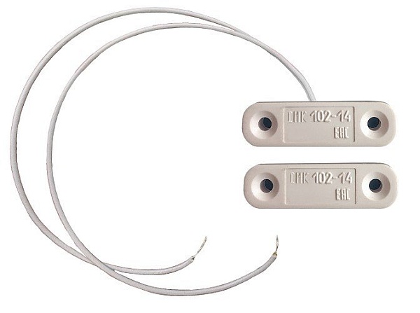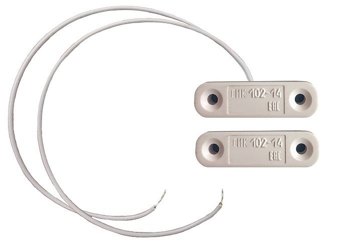 Магнитоконтактный; контакты размыкаются при тревоге; 15 мм (контакты замкнуты), 45 мм (контакты разомкнуты); U-коммут.72 В, I-коммут.500 мА, P-коммут.10 Вт; IP44, t-раб.-50…+50°С; 35х10х10.5 мм (геркон и магнит). Кабельный отвод. Пластиковый корпус. 0.01 кг
