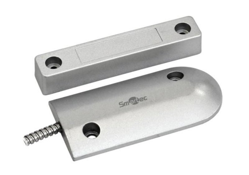 Магнитоконтактный для металлических поверхностей; контакты размыкаются при тревоге, 40 мм (контакты замкнуты), 60 мм (контакты разомкнуты); U-коммут.30 В, I-коммут.100 мА, P-коммут.3 Вт; IP66, t-раб.-30…+65°C, 104х50х10 мм (геркон), 107х20х20 мм (магнит). Кабель к металлорукаве 500 мм. Алюминиевый корпус.