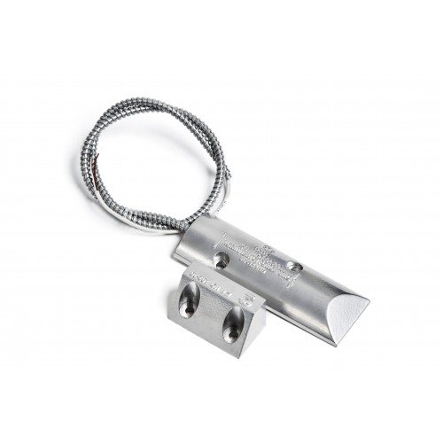 Магнитоконтактный для металлических поверхностей; контакты размыкаются при тревоге, 30 мм (контакты замкнуты), 65 мм (контакты разомкнуты); U-коммут.50 В, I-коммут.50 мА, P-коммут.10 Вт; IP44, t-раб.-50…+50°С, 120х40х12 мм (геркон), 53х30х30 мм (магнит). Кабель в металлорукаве 600 мм. Металлический корпус. 0.225 кг