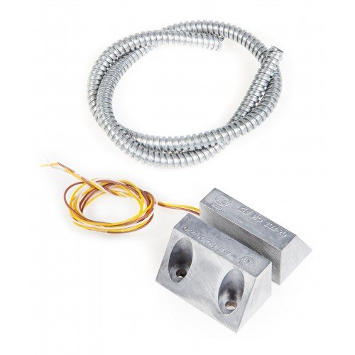Магнитоконтактный для металлических поверхностей; контакты переключаются при тревоге, 14 мм (контакты замкнуты), 40 мм (контакты разомкнуты); U-коммут.36 В, I-коммут.100 мА, P-коммут.7.5 Вт; IP44, t-раб.-50…+50°С, 53х30х30 мм (геркон и магнит). Кабель в металлорукаве 600 мм. Металлический корпус. 0.225 кг