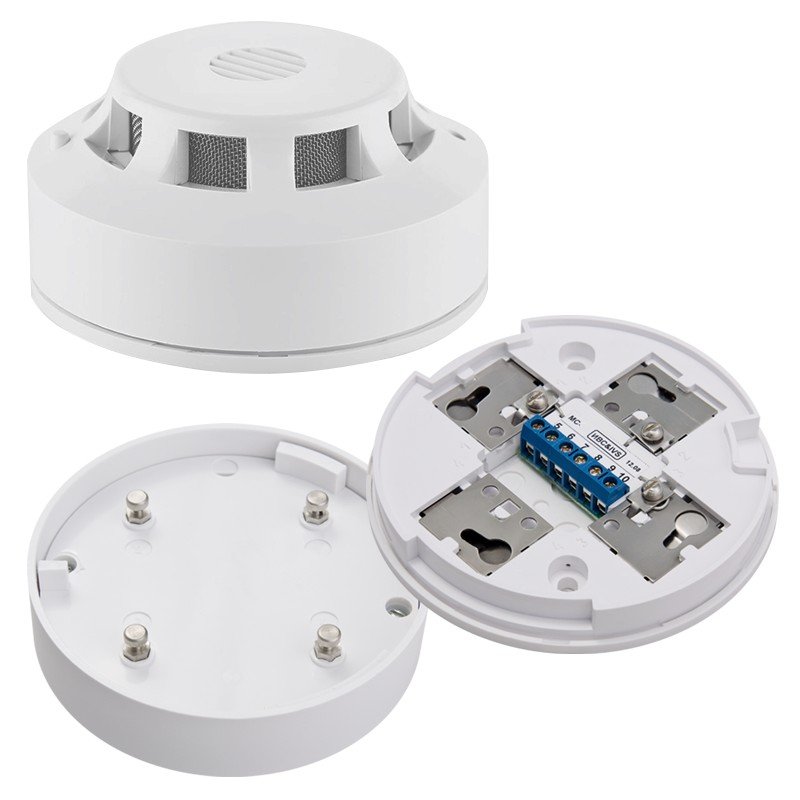 Извещатель пожарный дымовой точечный; индикация дежурного режима; 4-х проводный (НР); U-пит.9...15 В, I-деж.200 мкА; t-раб.-30...+60°С, 100х50 мм