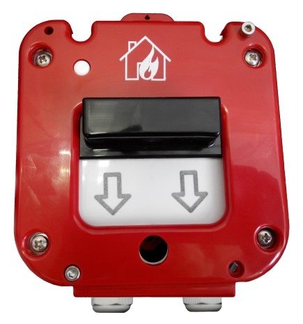Извещатель пожарный ручной, светов.индикация; U-пит.9...30В, I-потр.30мкА; дополнительный выход "СК" (НР/НЗ), U-коммут. 30В, I-коммут. 0.2А IP66, tраб.-60...+60°С, 129х158х72 мм. Приводится в действие смещением защитного элемента и опусканием приводного элемента (ручки) извещателя вниз в направлении стрелок