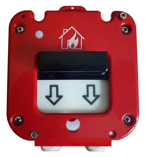 Извещатель пожарный ручной, светов.индикация, питание по ШС, U-пит. 9...30В, I-потр. 50мкА, IP66/68, tраб.-60...+60°С, 129x158x72мм. Приводится в действие опусканием вниз в направлении стрелок приводного элемента (ручки). Пластиковый ввод 11-17 мм.