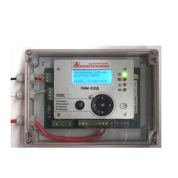 Модуль пожарный интерфейсный для контроля режима работы линейного теплового пожарного извещателя с подтверждением температуры срабатывания ТПТС, ТПТС-Х, CTI и CTI-X; ЖК-дисплей, 3 релейных выхода NO/NC «Пожар», «Неисправность», «КЗ», U-коммут.30 В, I-коммут.1 А; IP66, t-раб.-28...+49°С, 150x200x55 мм