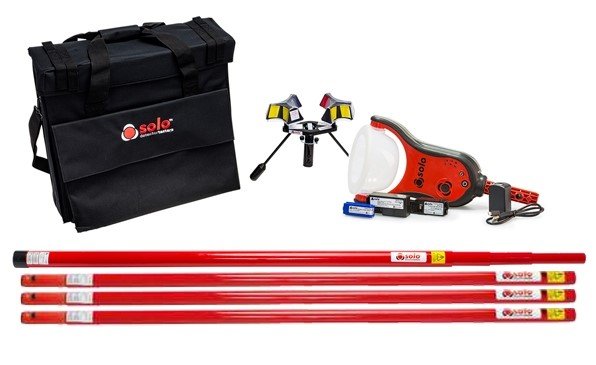 SOLO Комплект для электронного тестирования и демонтажа детекторов дыма на высоте до 9 м. Комплектация: 1 х SOLO 365 Электронный тестер дыма (вкл. зарядное устройство, аккумулятор, генератор и картридж дыма); 1 х SOLO 100 4-хсекционная телескопическая штанга, 4,5 м.; 3 х SOLO 101 Удлинительная штанга, 1,13 м.; 1 х SOLO 200 Универсальный съемник для демонтажа детекторов; 1 х SOLO 610 Сумка для переноски/хранения тестовых устройств с чехлом для штанг