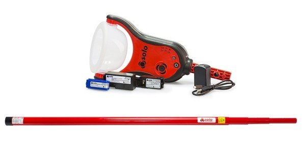 SOLO Комплект для электронного тестирования детекторов дыма на высоте до 6 м. Комплектация: 1 х SOLO 365 Электронный тестер дыма (вкл. зарядное устройство, аккумулятор, генератор и картридж дыма); 1 х SOLO 100 4-хсекционная телескопическая штанга, 4,5 м