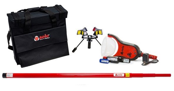 SOLO Комплект для электронного тестирования и демонтажа детекторов дыма на высоте до 6 м. Комплектация: 1 х SOLO 365 Электронный тестер дыма (вкл. зарядное устройство, аккумулятор, генератор и картридж дыма); 1 х SOLO 100 4-хсекционная телескопическая штанга, 4,5 м; 1 х SOLO 200 Универсальный съемник для демонтажа детекторов; 1 х SOLO 610 Сумка для переноски/хранения тестовых устройств с чехлом для штанг