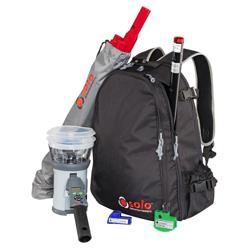 URBAN Комплект для тестирования детекторов дыма, тепла и СО на высоте до 5 м. Комплектация: TESTIFIRE 2000 Головное устройство для тестирования детекторов дыма, тепла и СО, TS3 Капсула дыма, TC3 Капсула СО, SOLO 110 4-хсекционная телескопическая штанга, 1,75 м,SOLO 111 Удлинительная штанга, 0,5 м - 3 шт., SOLO 611 Рюкзак для переноски/хранения тестовых устройств с чехлом SOLO 612 для штанг, SOLO 770 Аккумуляторная батарея NiMH, SOLO 727 Зарядное устройство для SOLO 770